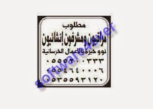 وظائف جريدة الرياض 7/10/2013 - وظائف السعودية اليوم - وظائف السعودية - وظائف جريدة الرياض - وظائف 2 ذو الحجة 1434 - وظائف شاغرة فى مركز طبى بالرياض - وظائف مؤسسة مقاولات وطنية بالرياض - وظائف مؤسة تعمل فى مجال الالكتروميكانيك ( اجهزة الامن والسلامة والتكييف ) لعدد من التخصصات - وظائف شاغرة فى مشروع كبير - وظائف 2/12/1434 - وظائف جريدة الرياض - وظائف السعودية اليوم - وظائف خالية بالرياض - وظائف جريدة الرياض اليوم - وظائف جريدة الرياض - وظائف السعودية اليوم - وظائف خالية بالرياض - وظائف جريدة الرياض اليوم - مدير تنفيذى - سكرتير تنفيذى - وظائف شاغرة فى السعودية - مهندس مدنى - مدير مشروع - مهندسين ميكانيكا - وظائف اليوم فى السعودية - معقب - مهندس كهرباء - مندوبين مبيعات - مشرف مواقع - رئيس محاسبة - وظائف المملكة العربية السعودية